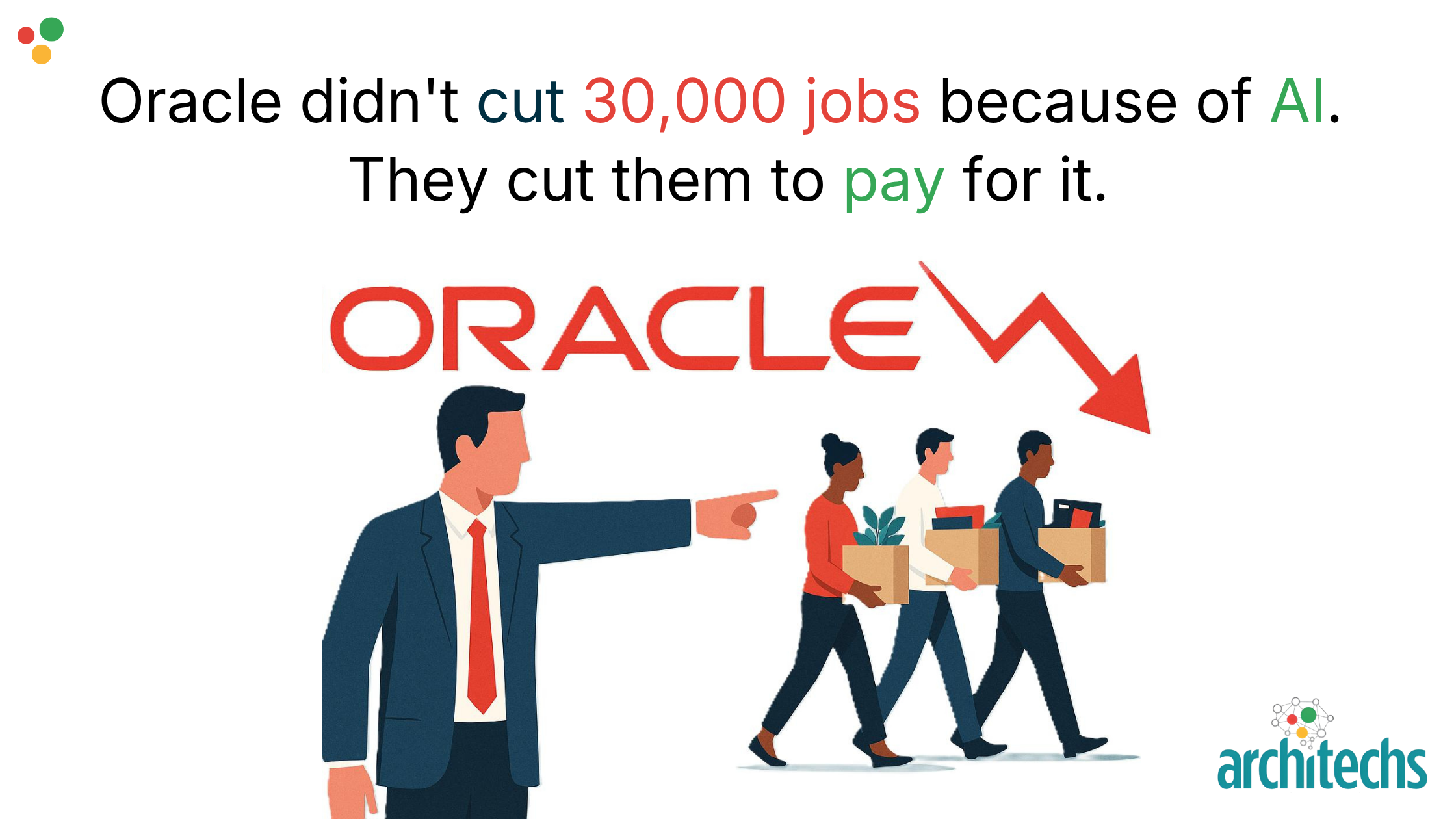 The Oracle story is about a company borrowing $58 billion to build data centres and needing to cut $10 billion from its payroll to service that debt. The AI label is convenient. It is also misleading.